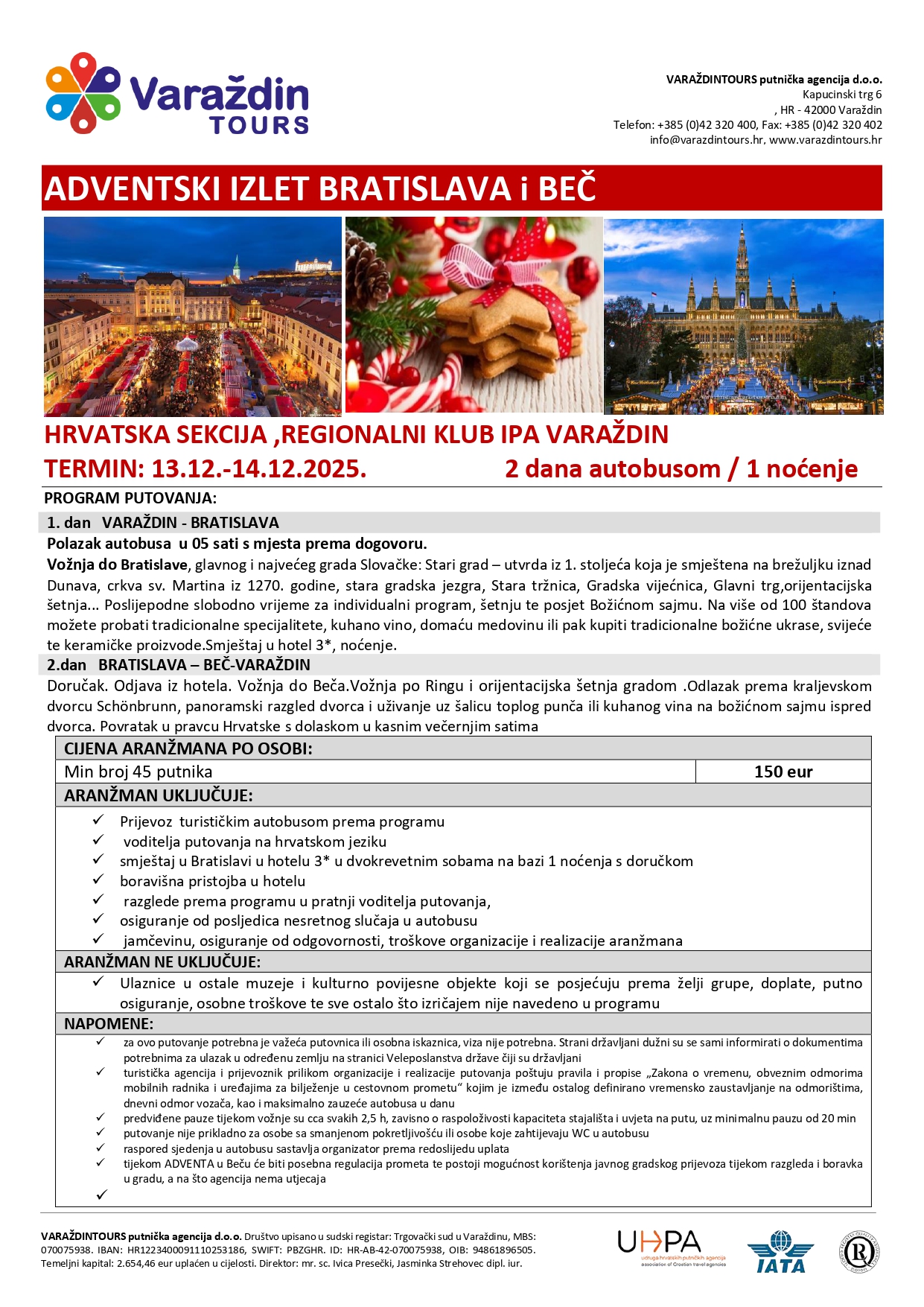 1. ADVENTSKI IZLET: BRATISLAVA I BEČ 2025